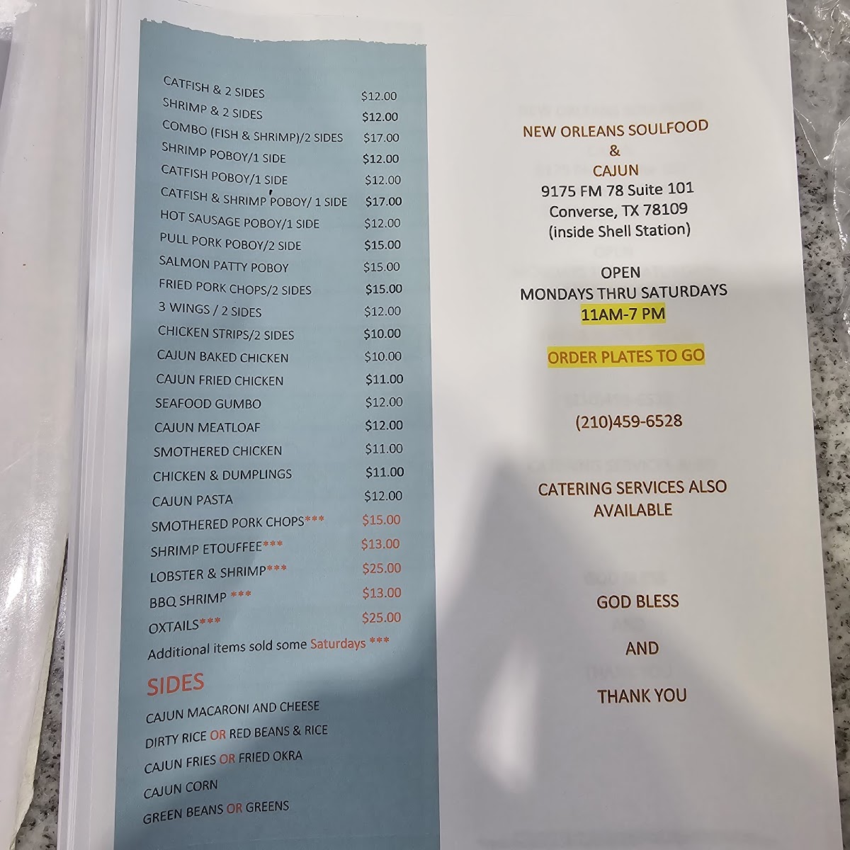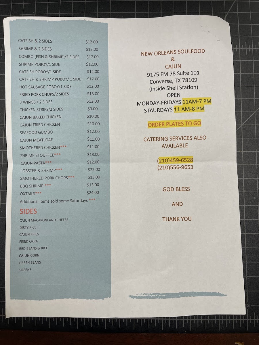 If you're craving bold flavors with a touch of Southern charm, The Kitchen New Orleans Soul-Food & Cajun Menu is the place to be. Located at 9175 Farm-To-Market Rd 78 in Converse, TX, this spot brings the heart and soul of New Orleans right to your plate. Whether you’re in the mood for spicy jambalaya, crispy fried catfish, or a hearty bowl of gumbo, every dish is crafted with love and packed with authentic Cajun and soul food goodness. The menu is a journey through New Orleans’ vibrant food scene, offering a mix of rich, smoky, and flavorful dishes that will leave you coming back for more. From the first bite to the last, it’s a celebration of southern flavors, all served in a welcoming and cozy atmosphere.
